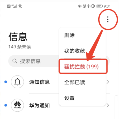 华为手机短信怎么拦截骚扰电话